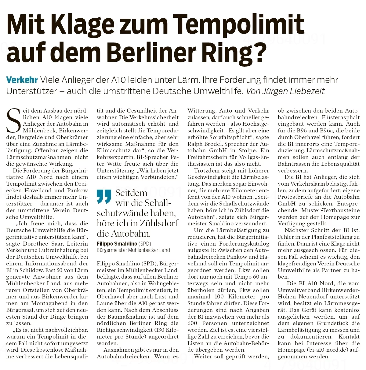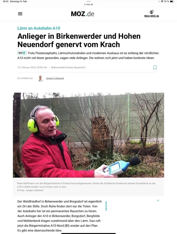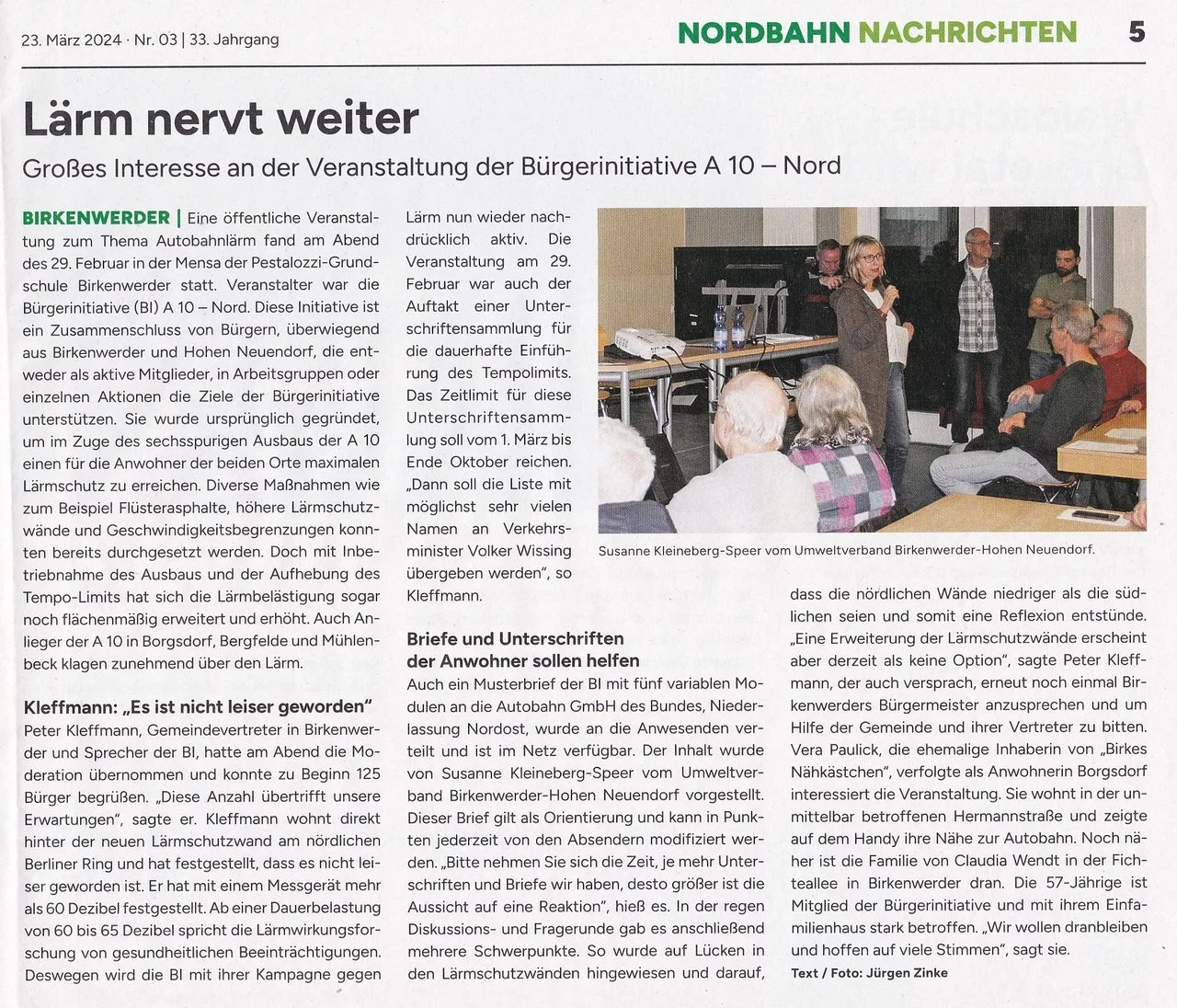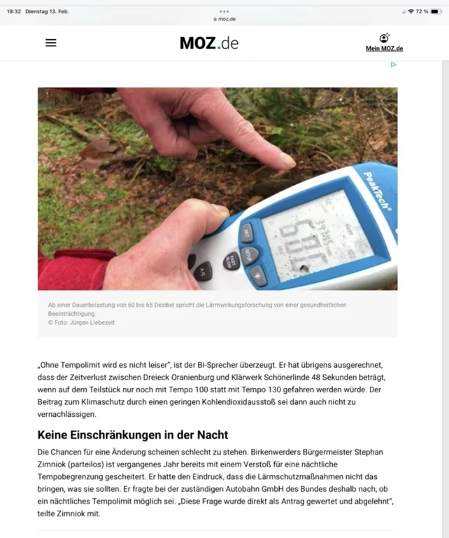 - Am 18.4.2024 findet eine Veranstaltung der Landes-SPD „Auf ein Wort mit der SPD-Landesfraktion“ in Oranienburg statt. Es werden Dr. Dietmar Woidke und der Fraktionsvorsitzende Daniel Keller sowie der Staatssekretär Benjamin Grimm anwesend sein. BI-Mitstreiter werden unsere Forderungen ansprechen und ggf. eine Info-Mappe „Autobahn-Lärm“ übergeben,